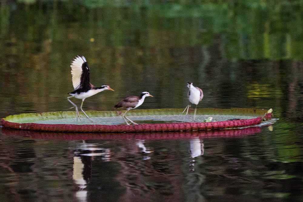Once it got dark we took our spotlights to explore the floating grasses, giant lily pads and water lettuce beds. Suddenly jacanas and baby caimans appeared among these patches of vegetation! It was an amazing day from beginning to end, especially with the lack of rain.