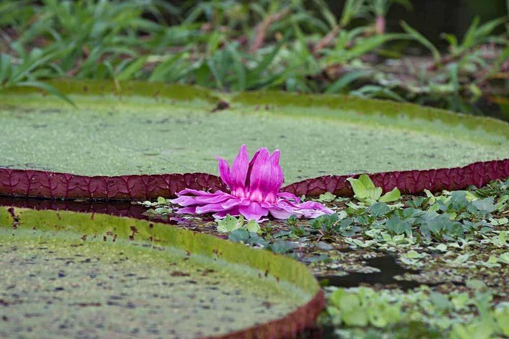 In the late afternoon we planned an exploration at night on the Dorado River. But, before it was night time, we paid a visit to the garden of giant lily pads! It is not a manmade garden, it is a natural one that happens to be at its best at this time of the year. As the day ended, we had the opportunity to discover the night life of the jungle and its sounds. The most exciting encounters in the night were the glowing eyes of white caimans resting on the floating vegetation. On the trees we had birds that forage at night, and in the air -- fishing bats! Including one bat with a fish in its mouth!