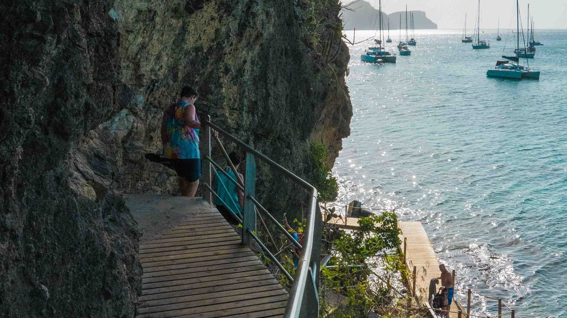 At 2:15 p.m., the captain dropped anchor in Admiralty Bay in Bequia, facing the lovely village of Port Elizabeth, our immediate destination. I could see the Hamilton Battery, named after Alexander Hamilton’s father, off our port. Alexander himself was born on the island of Nevis. We boarded tenders and landed in Port Elizabeth after a brief ride.