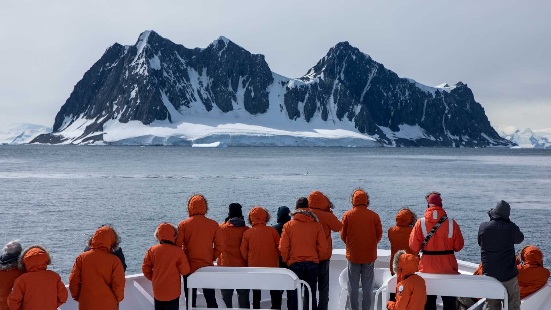 Very early this morning we crossed the Antarctic Circle and continued as far as 67:50.202 South and 069:03.298 West. This is by far the furthest south any ship in the Lindblad fleet has made it within the past couple of years. There was surprisingly little ice but we definitely saw some massive bergs. Just after lunch as we were on approach to Jenny Island, just off of Adelaide Island, we encountered three playful minke whales. The afternoon activity consisted of an informative nature walk amongst the granite boulders and elephant seals of Jenny Island. The shore was packed with juvenile males waiting to complete their molting before returning to sea. Brown skuas, Weddell seals, Adelie penguins, and blue-eyed shags were all amongst the wildlife spotted. After dinner we headed back north on the east side of Adelaide Island through the stunning narrow pass rightfully named The Gullet.