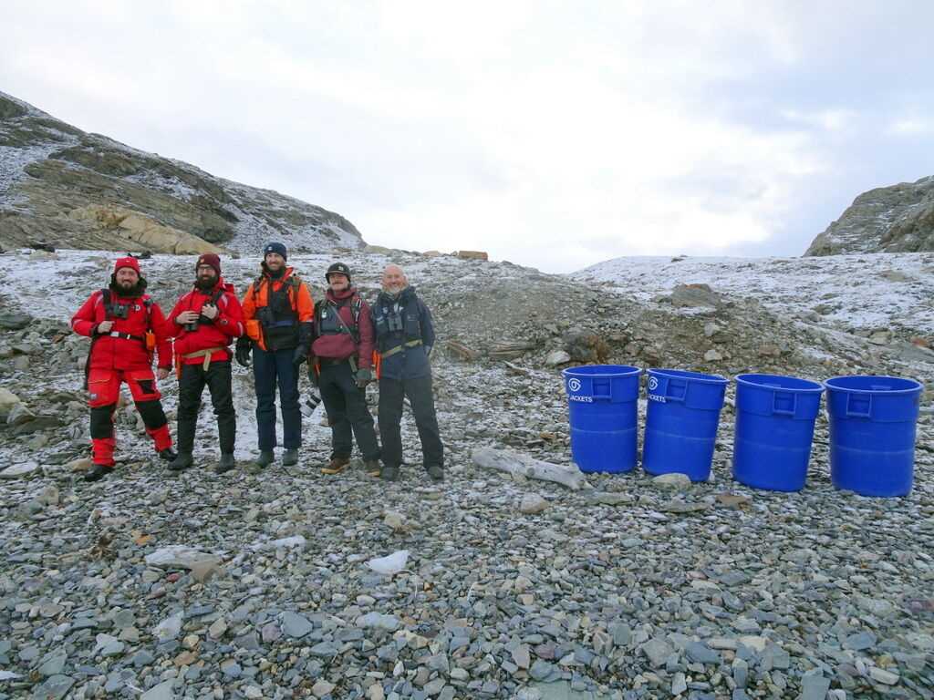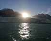 This morning at 7:00 am was noticeably darker than days before. One reason for that was the grey sky, however it wasn’t the main one. The days are getting shorter and shorter very fast at this latitude and this time of a year. The sea was rough, but not too much, wind 4 knots, and a scouting party was sent ashore of the Blomsterbugten, a little bay within the Kaiser Franz Joseph Fjord System. This fjord is a part of the Northeast Greenland National Park, the largest national park in the world. Three morning activities were offered for the guests, including long and medium hikes as well Zodiac cruises. The geology of the surrounding cliffs and mountain slopes was quite spectacular. Thousands of red, yellow, brown and dark-grey layers filled all the space between the sea water level and the clouds. The hikers had opportunities to watch a couple of Arctic hares that already changed their coats to the winter ones. A family of muskoxen were observed and photographed at a close distance. Meanwhile, the wind and corresponding waves were getting stronger, and the Zodiac cruising was a memorable event for those guests who had chosen this activity.