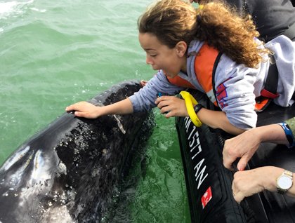 Today we got to enjoy what is, in my opinion, the greatest wildlife experience possible. We spent the day amongst the gray whales in their breeding lagoons here in Baja California, Mexico. Numerous mother and calf pairs were observed, traveling back and forth in the lagoon. A few whales decided to interact with us a bit more, much to our delight. We got to witness a few breaches, where the baby launches itself out of the water and crashes down, making a huge splash. A few spyhops were also seen. This is a bit like whale yoga as the head rises straight out of the water and then holds for a bit. One baby opened its mouth wide, showing off the baleen. And then ultimate: many of us got to experience curious mother and calf gray whales. These whales would come to our boats to get touched, and we were happy to indulge them. It does not get any better than that!