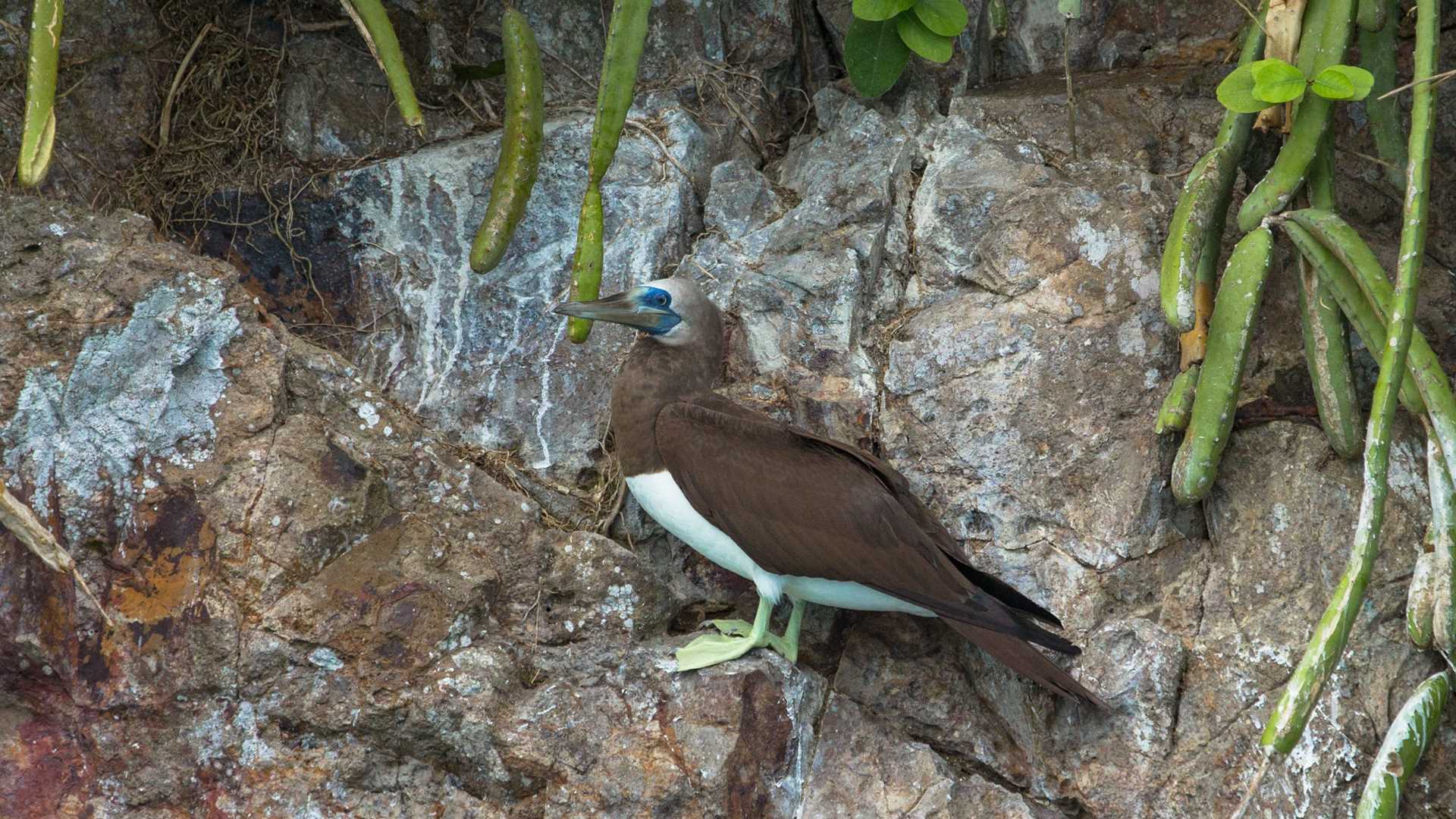 The slick arched wings of the magnificent frigate birds, with their red inflated gular pouches, were looking for a free lunch from the boobies. The chubby heavy body of the friendly brown pelicans was resting on the rocks or sitting on the water surface. How about the torpedo shape from the boobies, which dart their bodies at incredible speeds to reach depths of 40 feet!