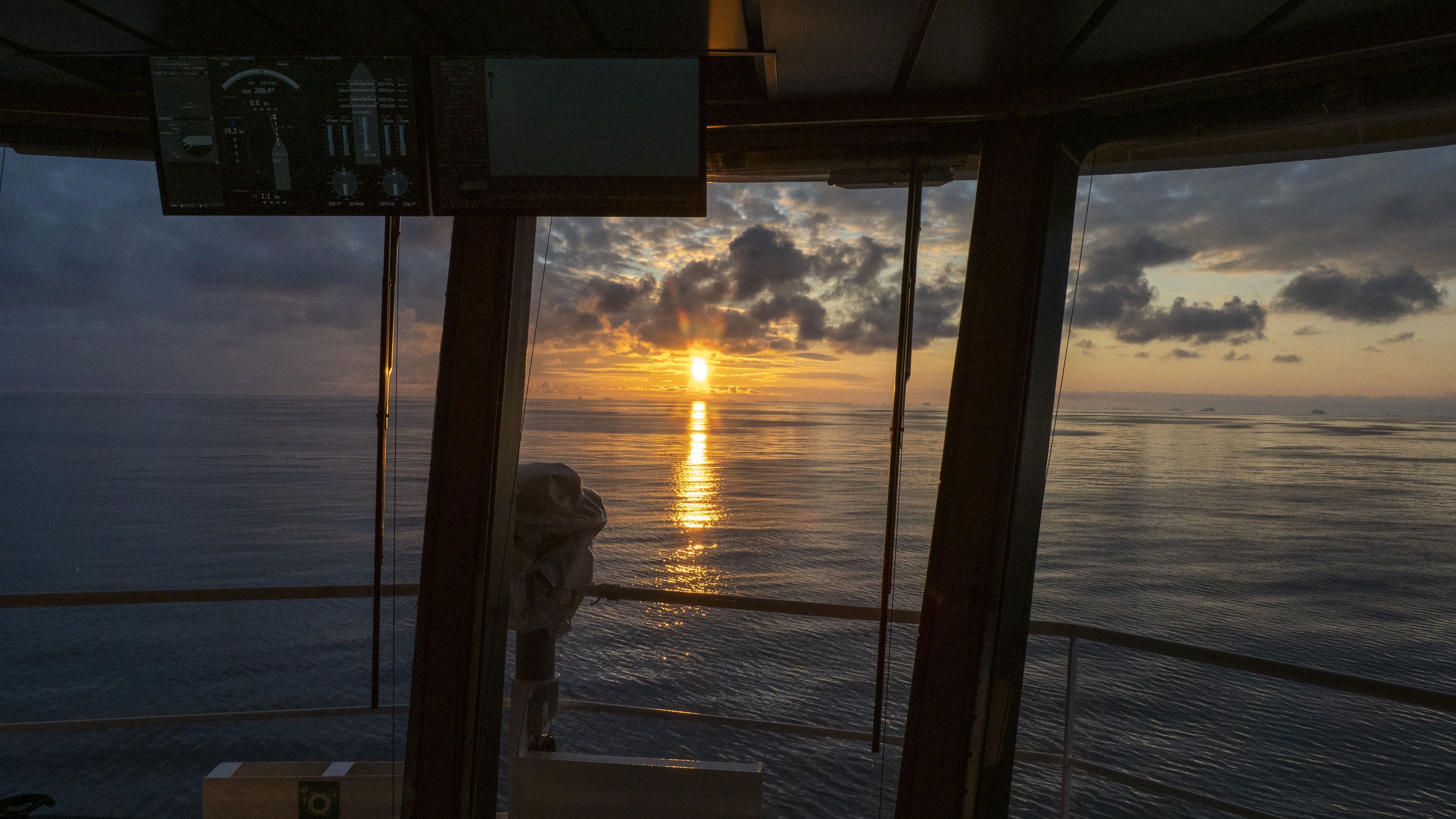 Almost home. Land is in sight as we complete our crossing of the Drake Passage and draw within view of Cape Horn. As sunrise begins to illuminate the clouds, we see the blinking light of the Cabo de Hornos lighthouse. Expedition leader Lucho tells us about the poignant albatross sculpture dedicated to lost mariners and reads us the associated poem in Spanish and English. We are sailing in sheltered waters now, and the sea has reached the balmy temperature of more than 7° C. The seabirds we have learned to recognize in the open ocean–albatrosses, petrels, and prions–are now joined by others, such as imperial shags from Patagonia. Fur seals are once again frolicking near the ship. With formalities complete, there is time for a last series of presentations from our expedition staff, including: a lively account of the world-defining voyage of Ferdinand Magellan by naturalist Madalena Patacho, intriguing ‘Behind the Scenes’ insights into the life of an undersea specialist from Brett Garner, and more about the famous Endurance expedition under the leadership of Sir Ernest Shackleton. After making time for some excellent afternoon Swedish pancakes, we sailed the remaining stretch along the Beagle Channel and came at last to port in Ushuaia. We gathered in the lounge for farewell cocktails with our captain. We celebrated the wonders we experienced over the last ten days, the good friends we traveled with and with whom we shared our discovery of the Antarctic, and the glorious land of Antarctica–the seascapes, history, and wildlife. Where will we travel next? Photo caption: An avian harbinger of the coming day. Photo by Steve Backus