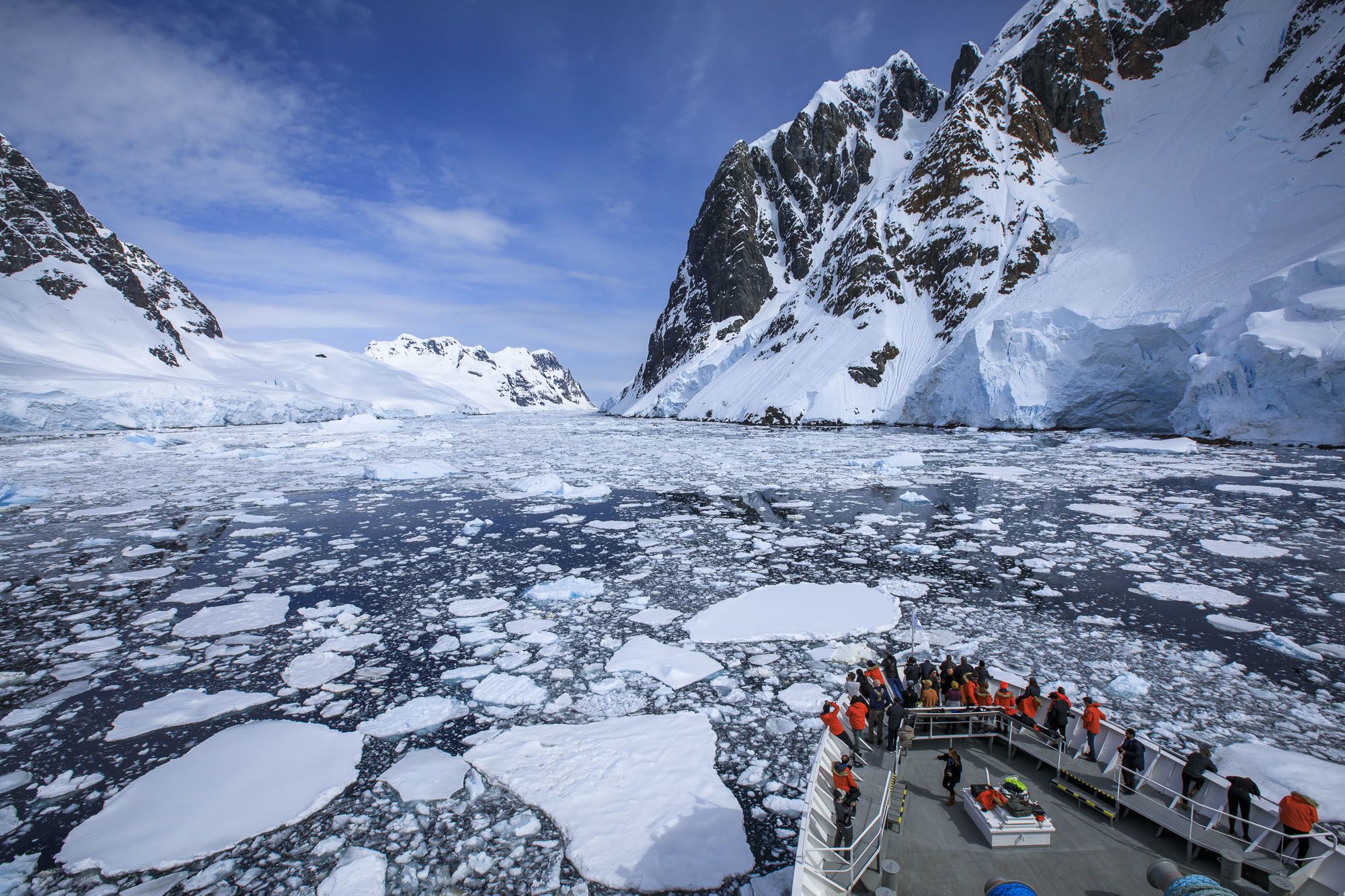 For nearly a week now, we explored the uninhabited expanse of the White Continent, including towering glaciers and abundant wildlife. There was virtually no sign of human life along the way, save for the scattered research station. Today, we continued our voyage into the Weddell Sea towards James Ross Island and Snow Hill Island to explore the human stories of the region and tales of early expeditions. Our morning began at James Ross, a relatively uncharted island. Ice crowds its shores, cutting off accessibility for much of the year. Hikes and Zodiac tours offered views of unique geology and of Snow Hill Island, our afternoon destination, across the way. There, we visited the historic hut from the 1902 Swedish expedition led by Otto Nordenskjöld. We learned about the team’s true saga of survival from historian Carol Knott. The afternoon’s polar plunge followed by a sunset cruise through a maze of tabular icebergs in Iceberg Alley topped off an amazing day. It was a perfect send off from the peninsula as we begin to make our way north toward the Shetland Islands and a final day of adventure.