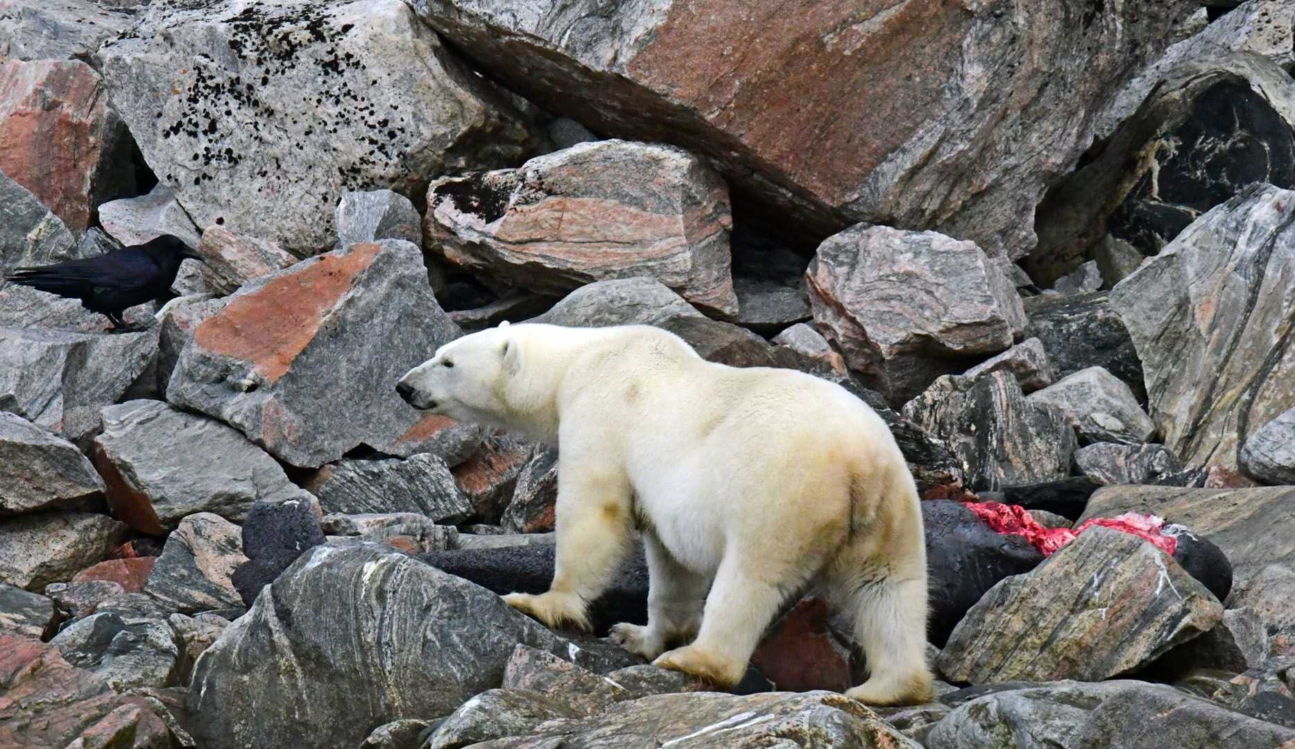 There, in the span of just a couple of hours, we spotted no fewer than four polar bears and a great number of narwhals. The first two bears were feeding on a fresh narwhal kill. Another adult bear was sleeping, and the fourth bear was walking along the shoreline until it stopped to drag the remains of a small whale out of the water.