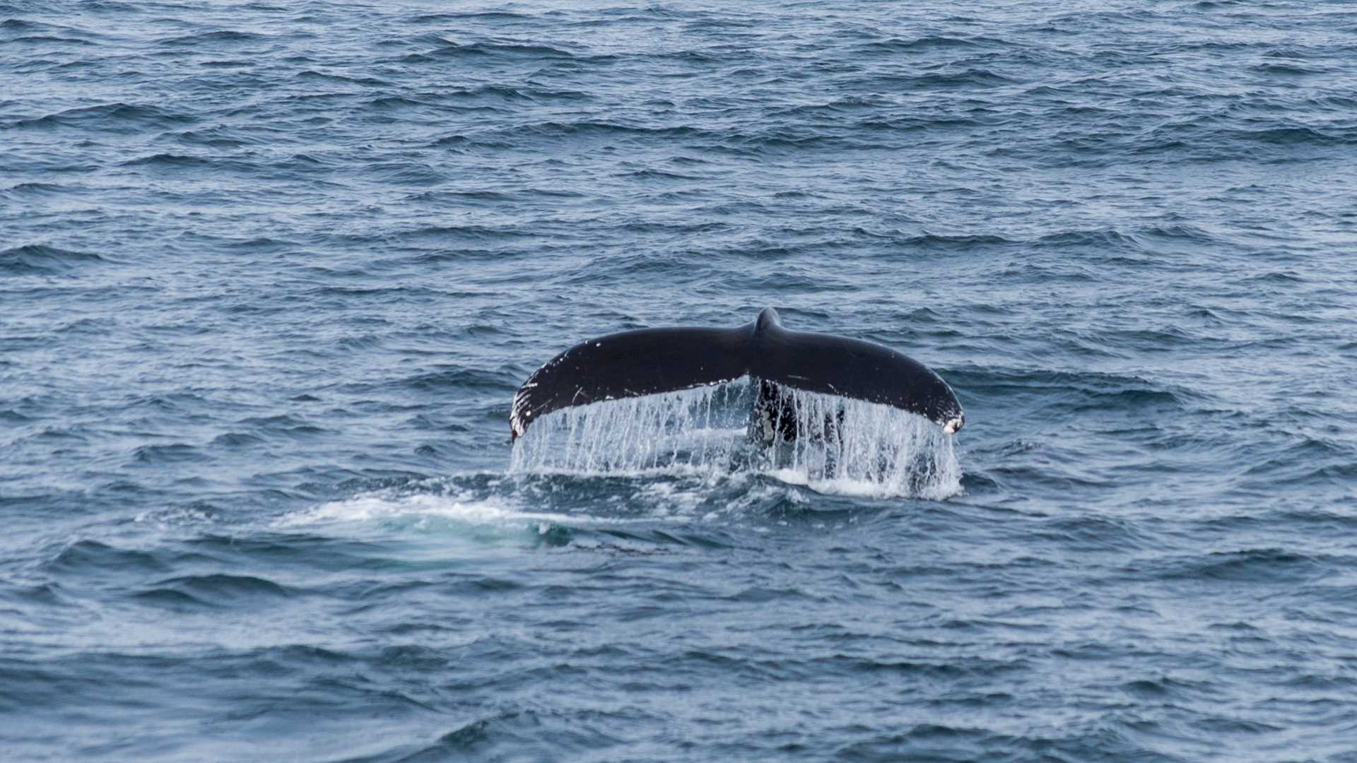 During lunch we left the Hornsund fjord systems and headed to the edge of the continental shelf or the “drop off” where we spent the rest of the afternoon sailing as we searched the open waters for whales. We came across a small humpback whale off the bow of the ship, which breached a few times and gave us some beautiful shots of its fluke as is repeatedly surfaced and dove. Saying goodbye to the humpback we spotted large spouts far out on the horizon, and we headed in their direction hoping for some larger whales. The distant spouts belonged to half a dozen fin whales, the second largest whale. Soon it was time to leave the whales and the drop off behind and continue to sail north towards our final destination, Longyearbyen. We spent our last evening aboard enjoying some spectacular images from the trip in the guest slideshow during the captain’s farewell party.
