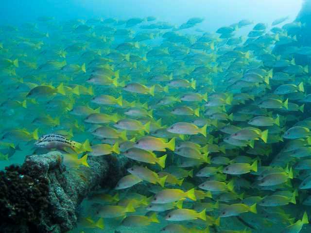 This morning National Geographic Venture anchored just outside of Cabo Pulmo National Park, located in the southeastern portion of the cape region at the end of the Baja California Peninsula. The story of Cabo Pulmo is one of conservation success, and tremendously inspiring. It all started when a small group of families who lived there realized that the number of fish that they were catching continue to diminish over time and, in an extremely bold and unprecedented maneuver, decided to stop fishing. With the help of members of the scientific community of La Paz they convinced the Mexican government to declare the area a National Park. They had a hard time at the beginning, trying to make a living doing all kinds of jobs in the neighboring Cabo San Lucas or San Jose del Cabo, but they kept their word, did not catch any more fish and made sure than nobody else did. In the meantime, nature kept her course showing that if we let her rest, she can recover. Scientists monitoring the recovery of fish populations shocked the conservation world when they published their results showing that Cabo Pulmo experienced the biggest rebound of fish biomass of any marine reserve in the planet, after a decade and a half of real protection.