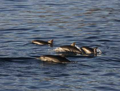 A perfectly fine morning to make the trip to the area of the Isla de San Jose. Here we have Canal de Ballenas (Whale Channel), where we spent a good part of the morning looking for cetaceans. And, of course, we weren’t disappointed! A very large group of common dolphins was sighted, and we were promptly among them. They were very definitely having breakfast among a large, spread-out school of probably sardines. They jumped back and forth, as the cameras quite silently clicked. A good number of babies and young were seen, as well as those funny sucker fish, the remoras, stuck on to their side, taking a free ride to the food, where they ate scraps of fish left over by the dolphins. And then they would again hold on to a different dolphin for a good ride.