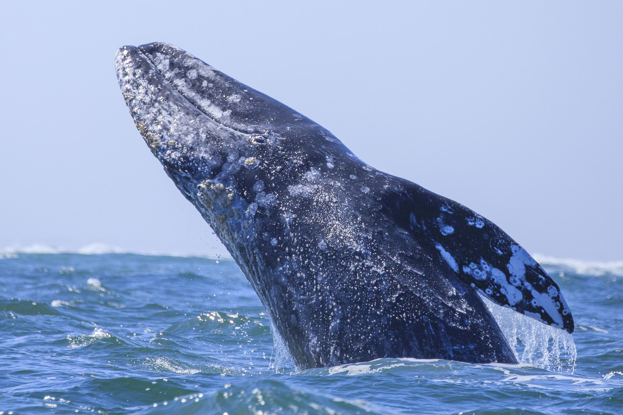 After El Berril, we enjoyed lunch while sailing to Sand Dollar Beach. We made another wet landing, but it was well worth the slight discomfort. We walked about a mile over fine-sand dunes spotted with dune vegetation and prehistoric middens of clamshells. We walked from the landing beach, which faces Magdalena Bay, to Sand Dollar Beach, which faces the open Pacific. Tracks of coyotes, birds, and lizards provided an interesting history of the recent past. Sand Dollar Beach must be one of the ten best beaches in Mexico and is certainly the most isolated. Several miles long, it was an ideal spot for ‘no-take’ beachcombing and solitary or naturalist-led walks. The soothing sounds of the gentle surf, the slight breeze, a clear sky, and perfect temperature burned a memorable experience into our minds. And yes, there are lots of sand dollars on Sand Dollar Beach, but all are sun-bleached skeletons.