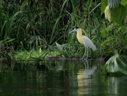 For the afternoon, we took to the skiffs and kayaks to enjoy the varzea forest. The blackwater stream we explored seemed like we were gliding across a mirror, with perfect reflections on all sides. Squirrel monkeys were common and curious, and the birds extra colorful. From the red of a tanager to the blue of a cotinga, the vibrant hues were certainly shining on a perfectly sunny afternoon. And as the sun got lower, the chorus of the forest increased, and added immensely to our experience.