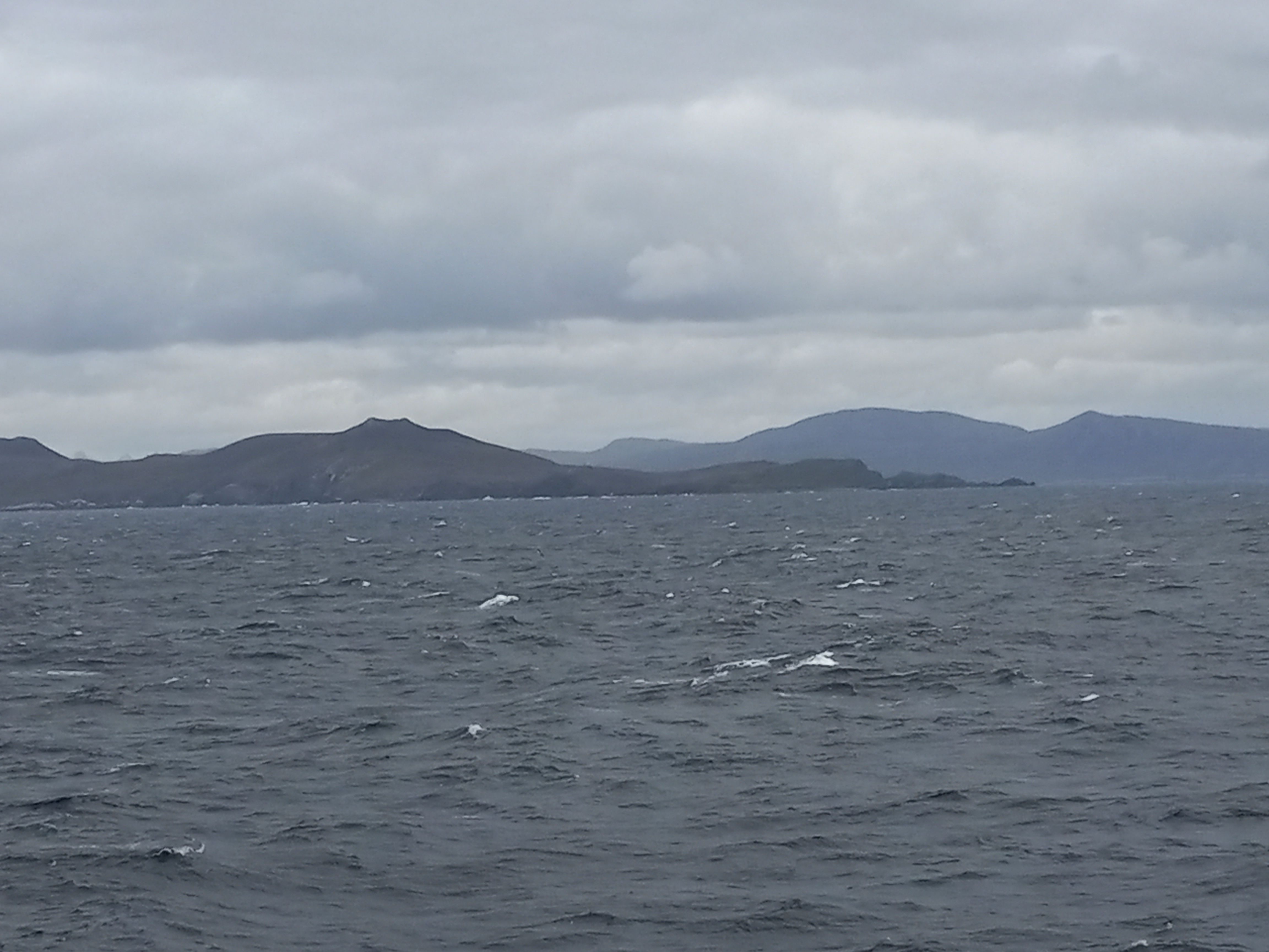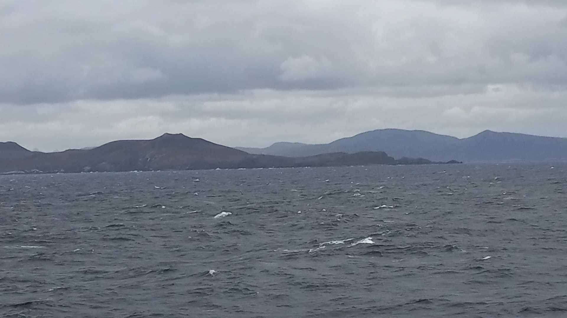 Today was the last full day of the expedition. In the morning, we finished crossing the Drake Passage. The passage was unusually quiet yesterday, but the waves grew bigger today, closer to their normal size in the Drake. In the late morning, Lucho, our expedition leader, announced that National Geographic Resolution was quietly drifting close to Cape Horn, the southernmost point of the Americas. For the first time in many days, we saw gently rolling mountains. What a contrast to the dramatic cliffs of Antarctica!