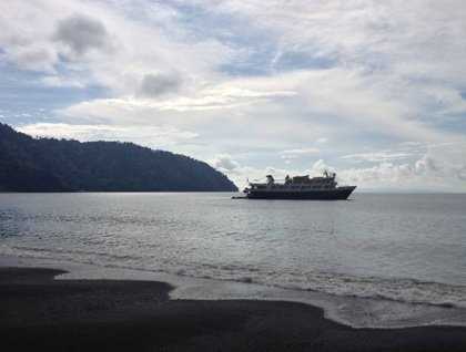 There is no better way to start the day than doing some morning stretching exercises while the sun’s rays lit up the paradise of Costa Rica. After navigating during the night from the Osa Peninsula, National Geographic Sea Lion dropped anchor in front of Casa Orquidea, located at the southern part of Costa Rica, where the mountains are drawn by the flight of scarlet macaws and the sounds of gorgeous birds take us to the maximum level of relaxation.