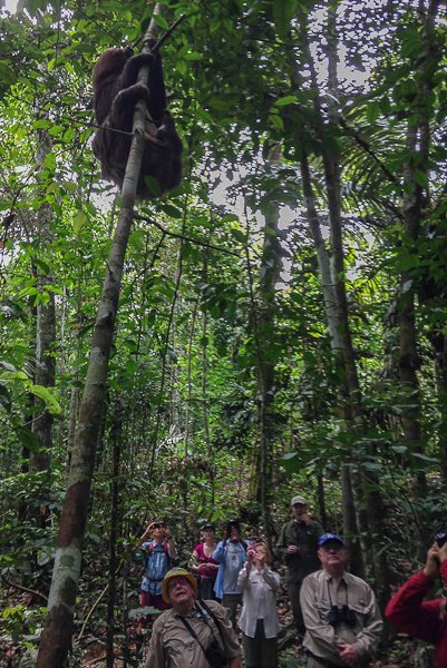 The highlight of the day was to find a two-toed sloth at almost eye level! It is quite a rarity to find one of these animals, since they have nocturnal habits. They are usually found on terra firme, and they hide during the day. Everyone had a great opportunity to spend some time in the close proximity of this rare creature.