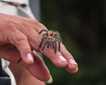After a scrumptious and bountiful breakfast we slipped into boots and crossed to the Casual Community to hike their nature trail. Today locals foraged in the jungle leaf litter and streams and brought us things to see up close: a tarantula, a small green anaconda, and a couple of different species of poison arrow frogs. They found a sloth and one lucky group got to see her come down the tree to take care of her bodily needs and then very slowly crawl across the ground! We admired huge ficus trees and myriad liana vines. Back at the banks of the river we had a chance to buy handicrafts made using the chambira palm fiber and woodcarvings. As we motored back to the boat it began to pour—excellent timing!