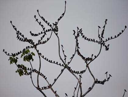 Reni, one of our local guides gave us a map and trip orientation and after lunch I gave an overview of the Amazon. During lunch and our siesta we were parked at the mouth of the black water Yanayacu River, where this river meets and mingles with the Maranon, stirring up of the nutrients. This results in a lot of fish and it is a good place to watch the pink and gray dolphins swimming around and feeding. Then we loaded back into the skiffs and headed up the Yanayacu to explore, passing a local village and several fisherman in their small dugout canoes. Along the way we saw long-nose leaf bats plastered on the side of a tilted tree trunk and a variety of raptors as well as our first troop of common squirrel monkeys.