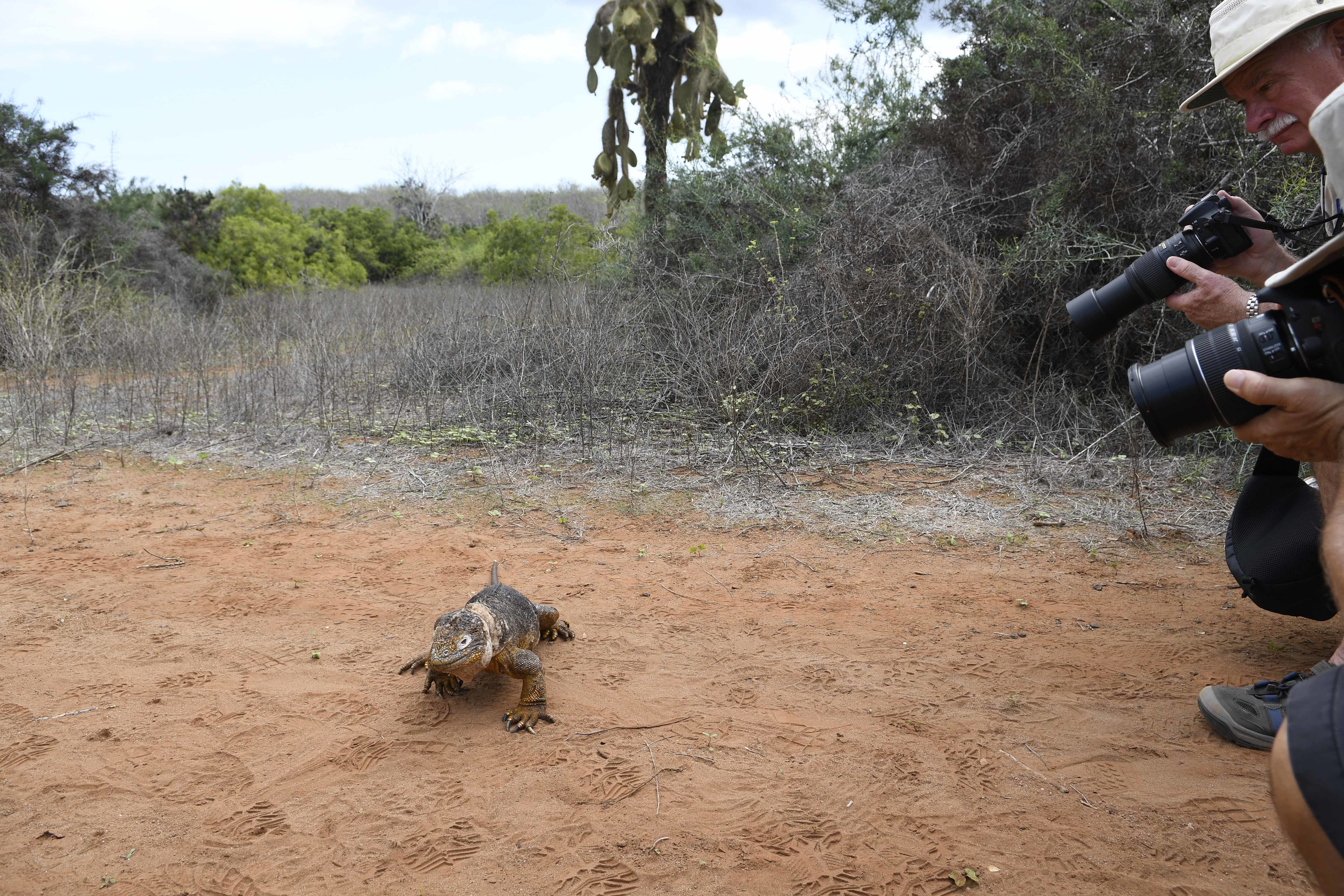 Today we woke up on the untouchable side of Santa Cruz Island, Cerro Dragon. This visitor’s site is known for a population of yellow land iguanas that live and nest in this territory. No humans are allowed to live in this area, so visiting it provides a wonderful, different view of the island of Santa Cruz. In the morning, we hiked along Cerro Dragon where we looked for iguanas and land birds, followed by a breathtaking snorkeling outing in a group of islets called Guy Fawkes.