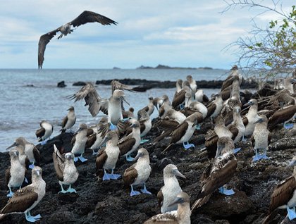 In the afternoon the ship was repositioned to a different location not far from Cerro Dragon, El Eden. Zodiac rides and kayaking along the coast were options to explore the area. Today El Eden was spectacular! We found hundreds of blue-footed boobies resting peacefully on lava rocks after having a feeding frenzy. Hundreds of blue feet in contrast to the black lava of the surroundings made this sighting a surreal and unforgettable one.
