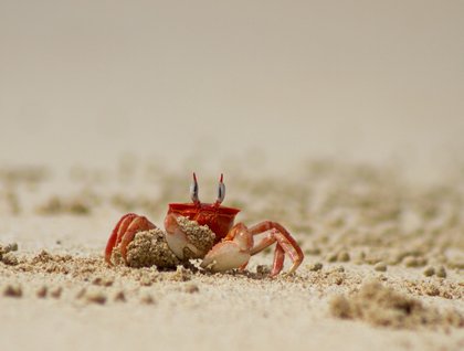 The Galapagos Islands are a sanctuary of wild life, and today we enjoyed more of the wonders that this paradise during our visit to the northern side of Santa Cruz Island.  Cerro Dragon was the best way to begin our exploration, and after a comfortable dry landing, we were ready to get into nature in order to find land iguanas.   From the very beginning of our excursion, we could see that nature’s marvels were on display, as sally light-foot crabs were found all over the rocks.  Once we reached the sandy area, ghost crabs decorated the beautiful white sand beach.