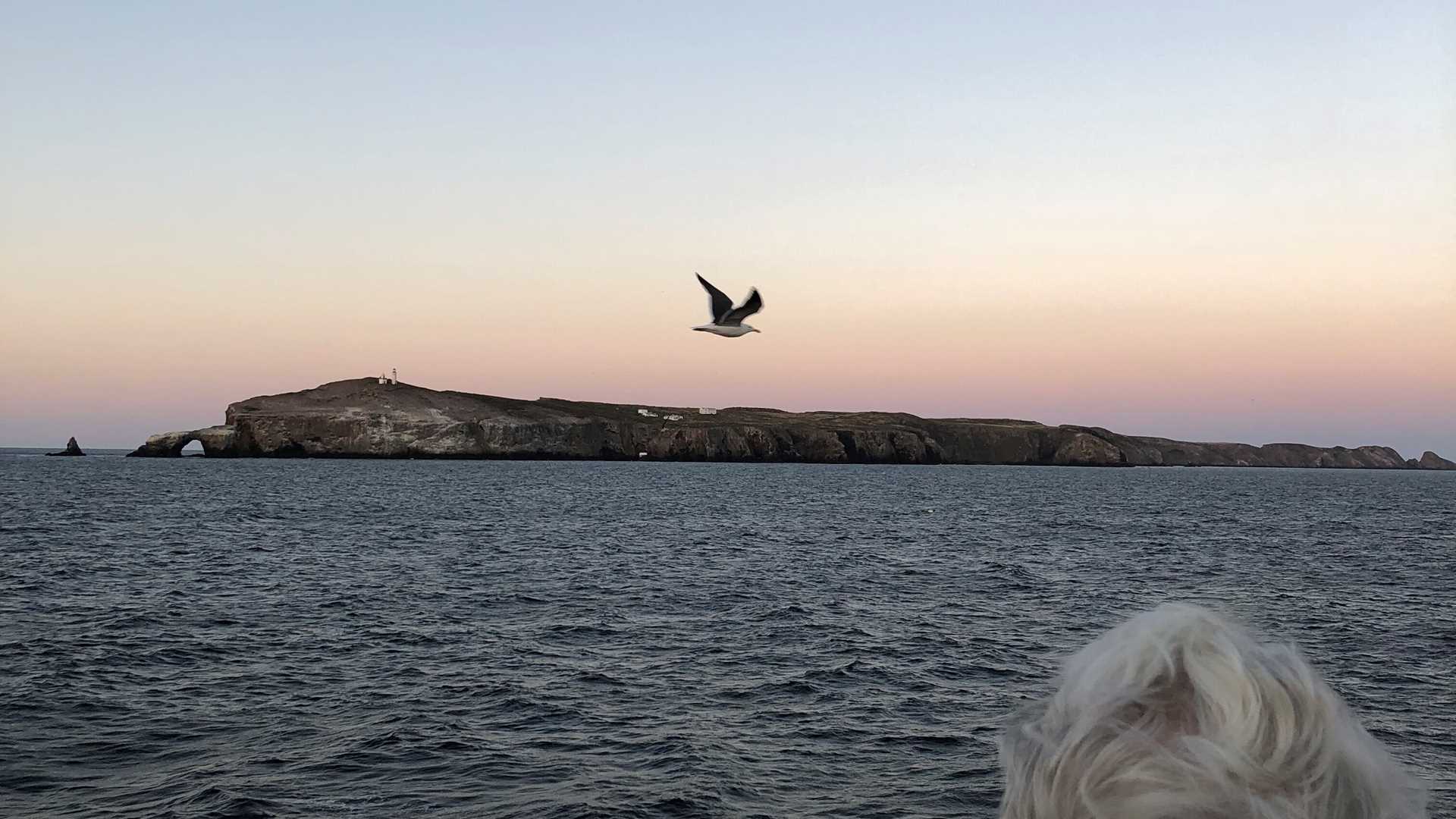 Our first day of excursion began with a celestial omen as planets aligned in the predawn sky. As morning broke, we arrived at Anacapa. The island was green with spring vegetation, and we saw flocks of western gulls, cormorants, and brown pelicans flying above the island. Three humpback whales, a pod of bottlenose dolphins, and a raft of California sea lions enchanted our guests as we cruised by. Later, guest speaker Tierney Thys used her talent of combining science with humor to introduce us to the amazing Mola mola fish.