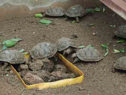 We began the visit to the Tortoise Breeding Center and first we saw the little tortoises that hatched just a few months ago. In one corral there were some from this year, only a few months old and crawling around, getting ready to live over 120 years.