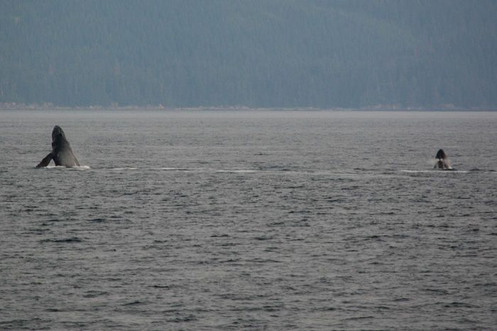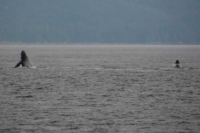 This morning dawned bright, sunny, and riddled with whales. In the middle of Chatham Strait – an extremely deep fjord leading south to the Gulf of Alaska – dozens of North Pacific humpback whales were diving and feeding all around the ship. These creatures have recently made a 6,000-mile roundtrip migration to the mating grounds of Hawai’i and Mexico and back. Arriving after having not eaten for 5 or 6 months, the whales feed on small schooling fish such as herring, capelin, and sandlance for 22 hours out of every day.