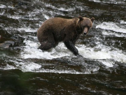 We had some first-day logistics to take care of, so as we did that, the ship turned north into Chatham Strait. David gave tips on taking good photographs, and Lee talked to us about bears and safety near them. Our afternoon anchorage was in a corner of Freshwater Bay called Pavlof Harbor. A salmon stream runs down a cascade from a lake, and pink salmon have just returned to spawn. The fish jumped occasionally in the stream, and out in the bay as well. A few weeks ago, these fish were in the North Pacific, but they’ve just returned to use up their bodies’ last resources in a final burst of energy—they’ll spawn, then die, and they’ll feed dozens of animals on this final leg of their journey.