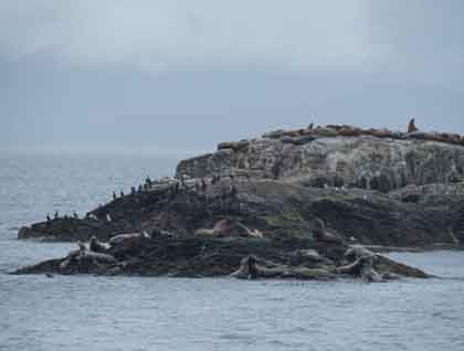 Late in the afternoon we ducked into Hood Bay in Admiralty Island. This island, home to the densest population of brown bears on the world, was once slated for logging. Concern for its preservation began the modern inclination toward preservation of the Tongass National Forest. We scanned the shores for wildlife and enjoyed the scenery of this wild part of Southeast Alaska before heading toward tomorrow’s walks near Fredrick Sound.