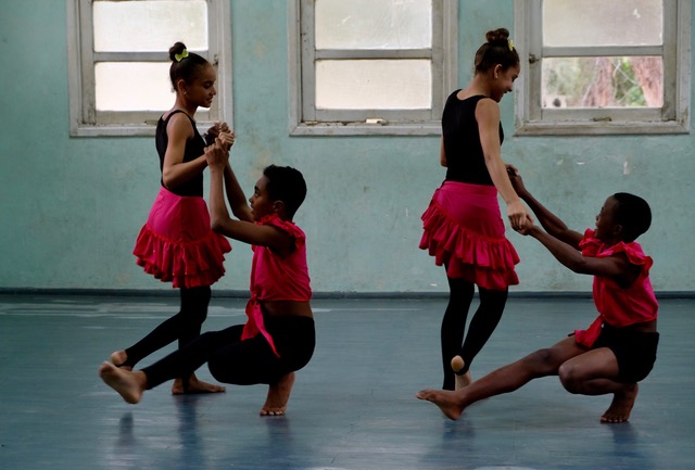 At the Benny More School of Art, we met with the school’s director and she told us about the school’s curriculum.  We got to experience it, too: music students played for us, a pair of high school students spoke about their visual art, and dance students performed for our group. Sounds of music practice drifted through the halls, and colorful murals decorated school walls.