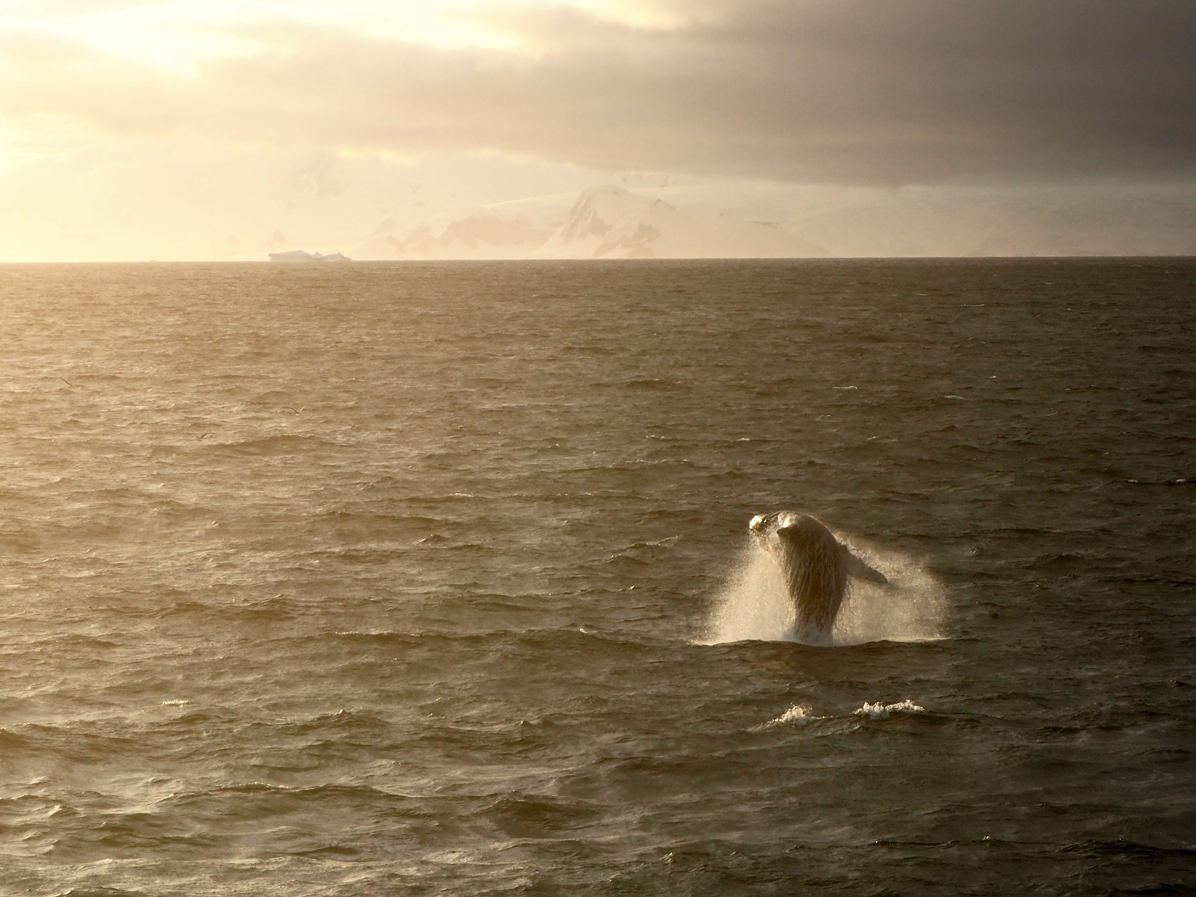 While this was surely enough to be the most memorable of starts to a new year, the excitement was far from over. Just as dinner was ending, our Expedition Leader Lucho announced that we had encountered breaching humpback whales. For over an hour we followed a group of four or five individuals feeding at the surface, displaying some thrilling behaviours, with one young calf in particular breaching spectacularly over and over again. Watching beautiful, majestic humpback whales breaching into the Antarctic sunset is going to be hard to top as a spectacle this year.