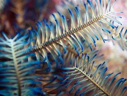 The divers also reported wonderful dives today. With the expert knowledge of Sid and Umeed, the divers were taken to the best sites in the area, ending their day with a dusk dive as the sun began to set. Meanwhile the snorkelers were all back on board, albeit for a short while – a sunset Zodiac cruise departed at 4:15 p.m. to cruise around the small bays and inlets peppering the coast of Cinque Island. With the sun lower in the sky the conditions were cool and still. There was a feeling of tranquility in the boats as we peered into the island through the tall palms and ferns.
