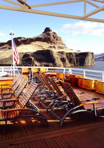 Today was a wonderful start to our journey down the Snake and Columbia rivers! Following breakfast, half the group boarded the jetboat and headed upstream, bouncing over riffles and rapids in the pursuit of scenery and wildlife. Very quickly we spotted a herd of bighorn sheep lollygagging near the water and everyone had a chance to snap photos of the animals strolling along a cliff face. Basalt columns intrigued us as we headed on, and the topography became more steep and precipitous.