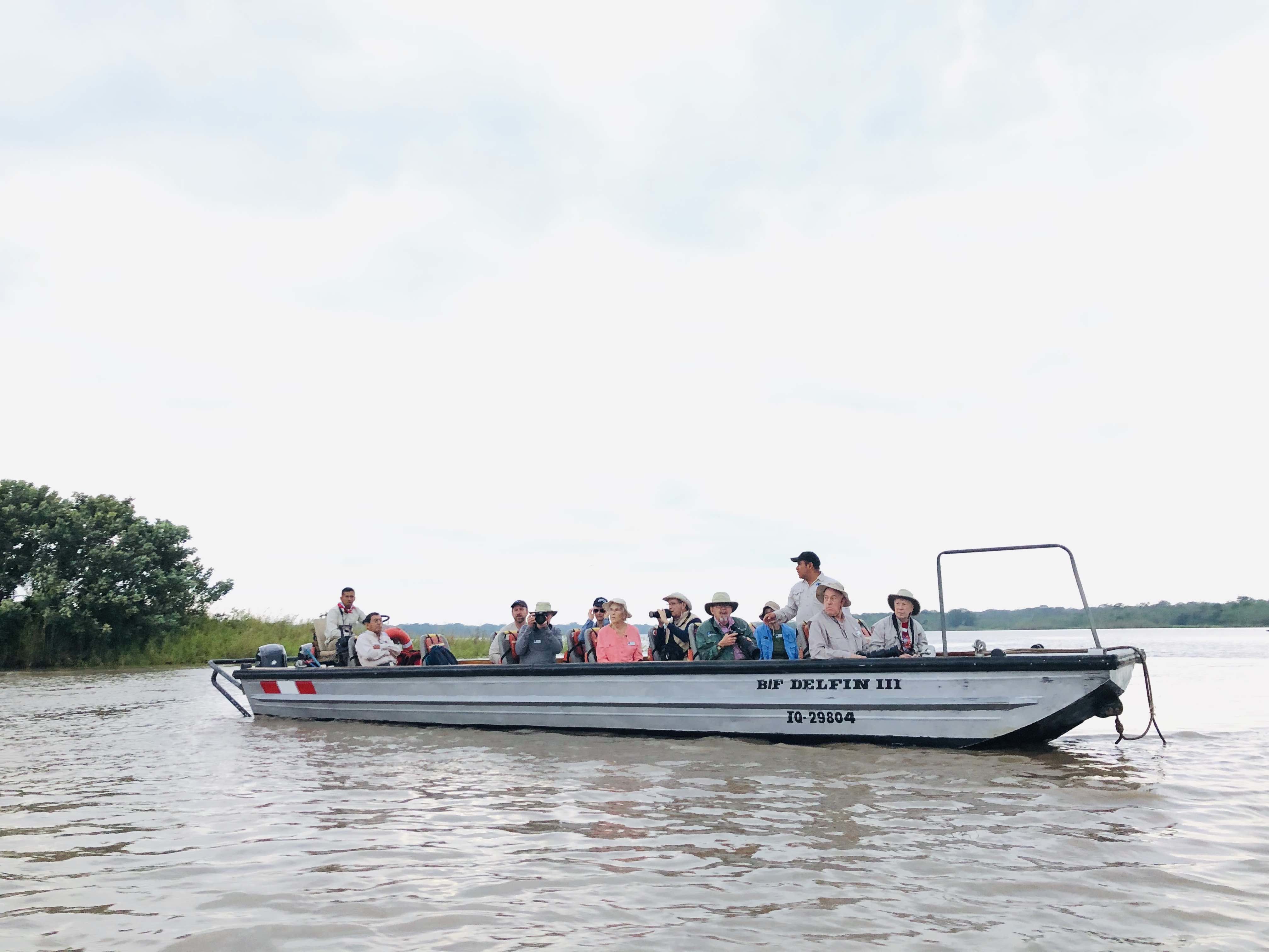 We have had an astonishing week full of the kind of unfathomable experiences that only happen once in a lifetime. Tomorrow, we will be back to another jungle built with cement and other kinds of wildlife. But this morning, we are visiting a very small community at the foot of the Amazon River. People living here are poor in possessions but rich in a very natural way of living, and you see very happy people everywhere. Our guests enjoyed interacting with locals, eating their food, and learning how they use local materials found in the jungle for agriculture, fishing, and handicrafts. Minga Peru is a non-governmental institution. The Lindblad Fund supports these communities in the Upper Amazon through education and by empowering people, especially women, to develop job skills, create jobs with better incomes, and eradicate domestic violence. In the afternoon, we went to Casual Forest. With the help of some local, expert guides, we explored the jungle. The site is home to many creatures, like tarantulas, tiny frogs, and boas. We observed many medicinal trees. This outing was a great learning experience for our guests. Once we got back on board, we enjoyed a farewell cocktail party with all the crewmembers. Our guests were very happy after a great week exploring the Amazon of Peru. Our week was very special. We found capybaras and large caimans during our nocturnal outing, and the highlight was spotting a big jaguar resting on the riverbank of the Pacaya-Samiria Reserve. To celebrate the end of our memorable journey, our talented crew performed in the dining room. They played some local music and danced. We will depart in the morning for Iquitos, where we will visit the Manatee Center and the city’s boulevard. We had a wonderful time together. We made new friends and will remember this trip forever. Cheers to Peru!