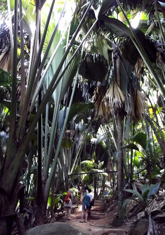 From this beach, Baie Laraie, most of us hiked across the island to Anse St. Jose, the long, gentle curve of pale sand just in front of our ship’s anchorage. The trail climbed through two steep boulder gardens—granite again—and between them wandered along the edge of a mangrove forest, giving us a nice opportunity to enjoy the island’s scenery as well as its flora and fauna, including distant views of the Coco d’Mer palms that grow only on Curieuse and nearby Praslin.