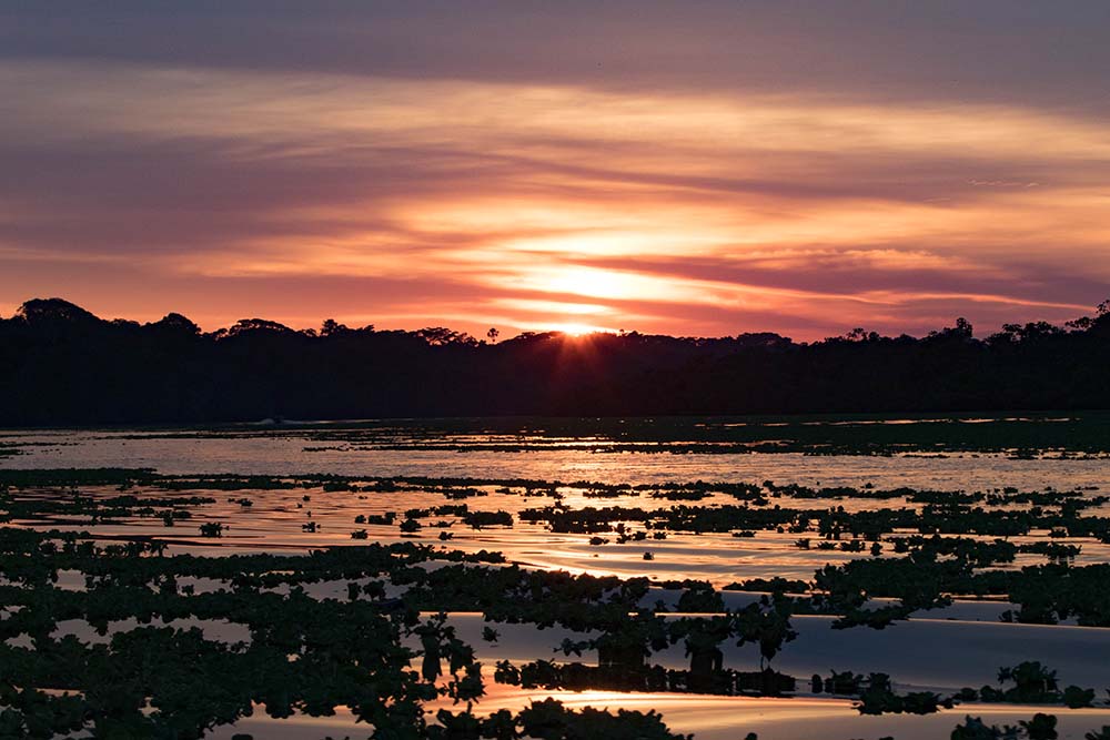 The sun was rising this morning as National Geographic Quest docked in the Port of Golfito. The Standard Fruit Company exported its banana production through the port until the mid-1980s. After this, the company formally began operations in Costa Rica. Ship handling was the main interest of the site, so very little land was used for settlement. Much of the original forest was left in place to guarantee not only the water supply, but also for the delight of those who lived here. After clearing Customs this morning, we went out to explore the mangroves of this beautiful place. Some guests enjoyed Zodiac tours. Other guests desired more exercise, so they observed the mangroves while kayaking. After repositioning the boat inside Golfo Dulce in the afternoon, we explored the trails of Dolphin Quest, a private reserve connected to Piedras Blancas National Park. We observed scarlet macaws, white-faced capuchins, white-lipped peccaries, and several species of small amphibians and reptiles. We were pleased to spot a tree frog called Hyla rosembergii , a species rarely found close to the ground, especially during the day. The day was a success, starting with a beautiful morning and ending with a fantastic sunset.