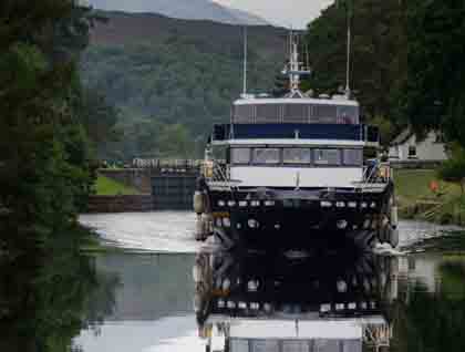 We awoke this morning to the sound of the engines of Lord of the Glen as she pulled away from her berth at Corpach, to begin her day of sailing through the Caledonian Canal. In no time at all, we were ascending Neptune’s Staircase, the biggest flight of locks on the Canal. The staircase is aptly named and Lord of the Glen climbs the stair-like set of locks one after another until we finally reach the last one, seemingly only a few hundred yards from the beginning of the first lock. We then sail along the River Lochy with wonderful views of Ben Nevis, the tallest mountain in all of Great Briton. One of the many swing bridges we pass is the Moy Swing Bridge, still in use after 140 years of service, and still operated by hand, the only one of the original bridges still in use today.