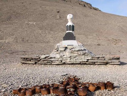 Transiting to our afternoon destination of Dundas Harbour, we spotted a herd of about a dozen muskox spread out on an alluvial plain on Devon Island. As we slowly approached the beach, a polar bear taking a nap revealed itself next to a muskox kill. We were not sure if the carcass was scavenged or taken by the bear but needless to say this was another plump happy bear sleeping off the warm summer days. Continuing to Dundas Harbour on this astonishing wildlife and landscape day, all the acute eyes on the bridge also spotted bear-dots (boulders), wal-rocks (rocks), and musk-barrels (oil drums).
