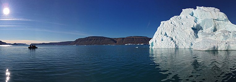 Delayed meals due to wildlife priorities are a frequent occurrence on this type of exploratory expedition and today was no exception. We embarked from the ship on Zodiacs near the face of a large sparkling tidewater glacier with sizeable icebergs possibly floated in from Greenland. For the remainder of the morning, we perused a plethora of glacial ice ranging from tiny brash ice and growlers to gigantic bergy bits and a few “ship-sized” icebergs. Along the medial moraine a sleeping polar bear was spotted and even with a trained eye it was almost imperceptible since Ursus maritimus is the master at disguise. The bear slept contently as we explored the front of the glaciers and occasionally a seal poked its head up to spy on all the bright colored coats pointing big lenses from our Zodiacs.