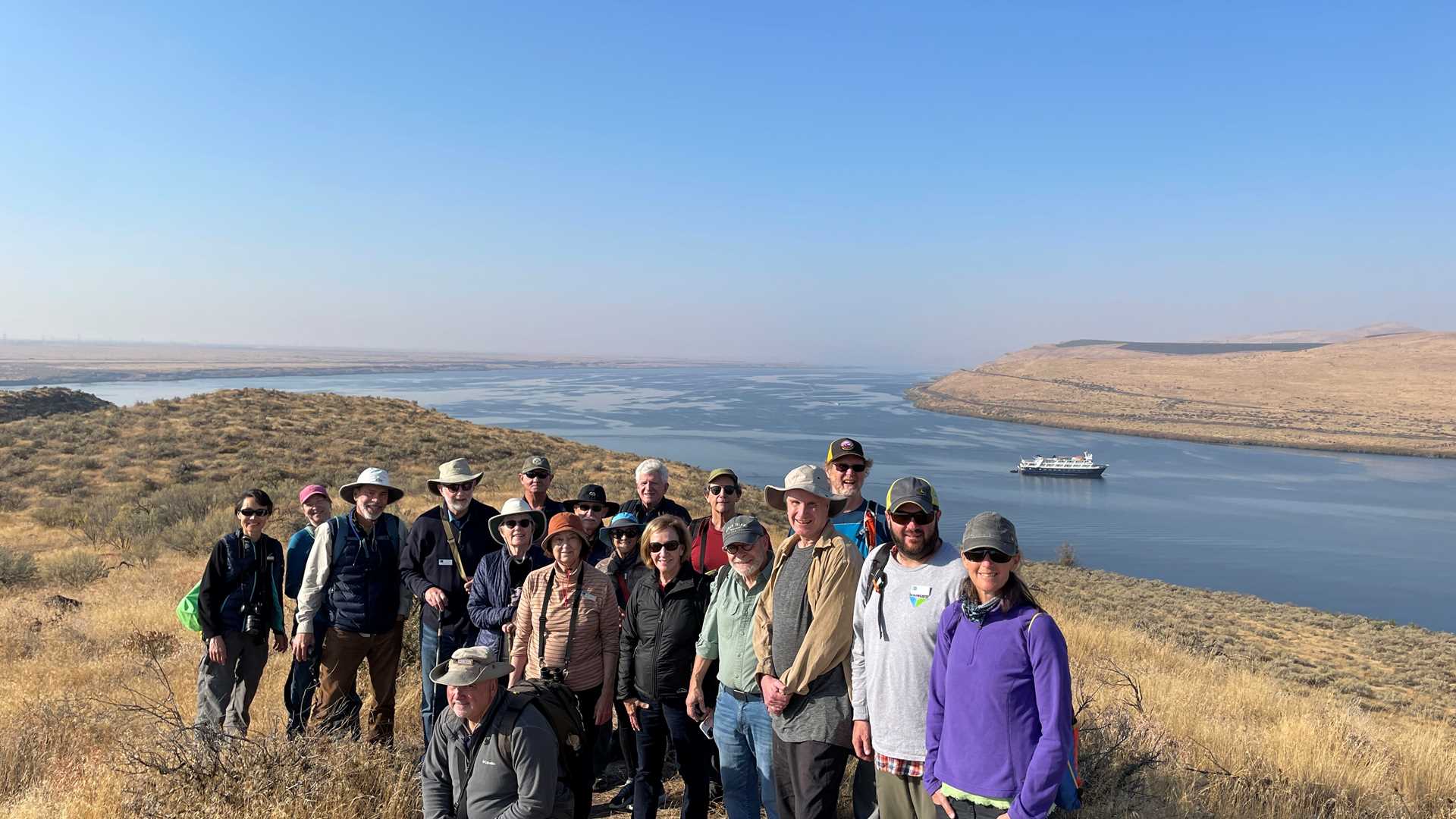 The ship anchored off Crow Butte, where guests were shuttled to shore for hiking across the sagebrush-step landscape with sweeping views of the Columbia River and National Geographic Sea Bird. Guests spotted northern harrier and red-tailed hawks among the desert landscape populated with big sagebrush and rabbitbrush. We observed evidence of mule deer, fox, and field mice along the trail. Following our morning hikes, the group was given a Food-Water-Energy Nexus talk in the park by river historian and naturalist, Patrick MacQuarrie, before returning to the ship for lunch.