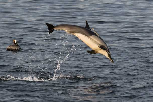 As the sun was slowly rising to the East, the National Geographic Sea Lion cruised the east side of Isla Carmen in hopes to see wildlife, especially of the cetacean kind. We did not have to wait long, a feeding frenzy of birds beckoned us slightly farther to the East, and turned out to have a vast pod of common dolphins busily herding the bait fish from below! Soon after leaving this amazing scene, we spotted a Blue Whale, which gave us several good looks before continuing on to Puerto Escondito. Finally, we repositioned to Puerto Ballandra, on Isla Carmen, for an activity stop, cocktail hour and sunset on the beach.