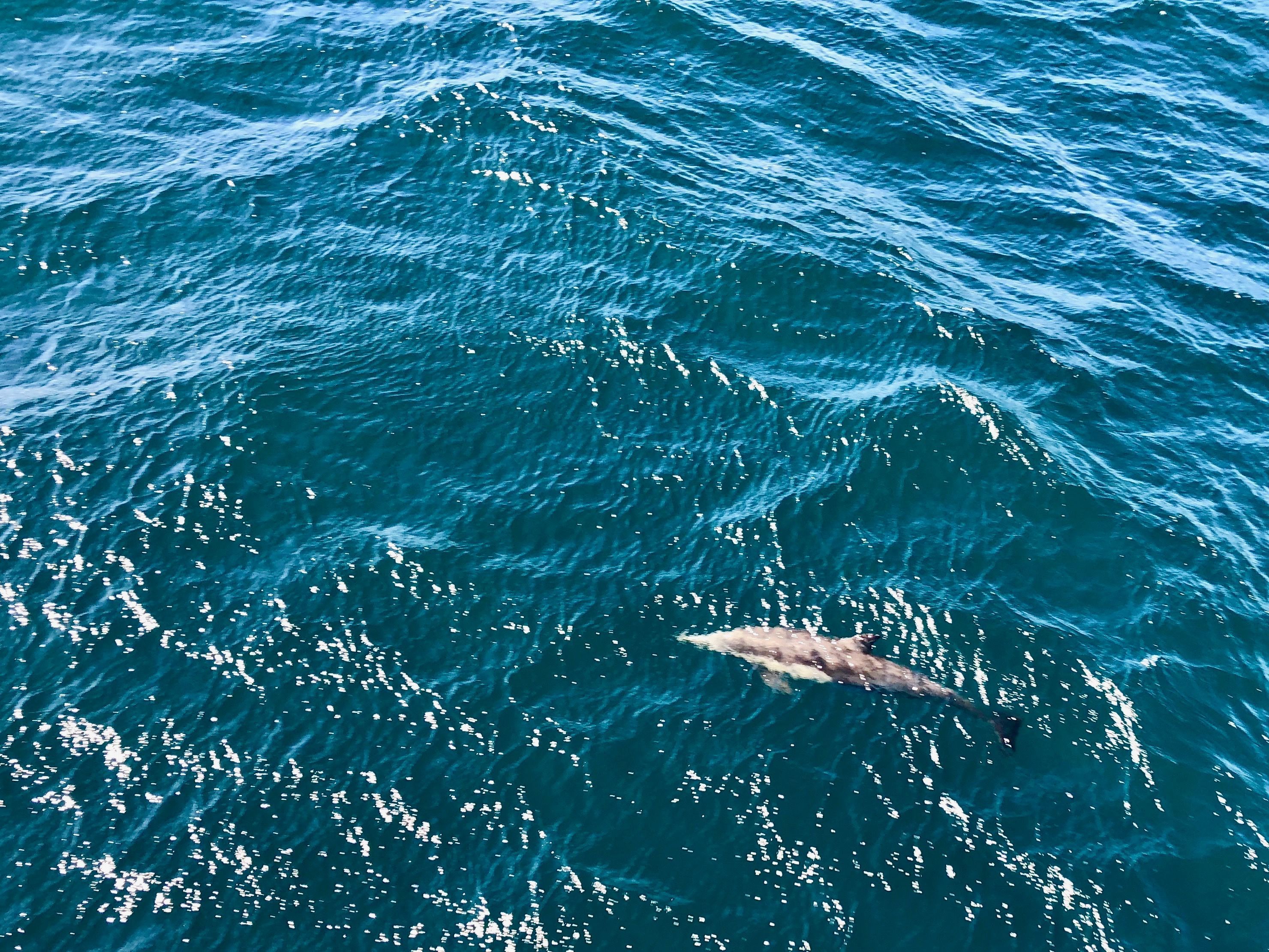 After we tore ourselves away from the feeding frenzy (and had a second attempt at the briefings) we spotted several blows off in the distance. As we cruised closer, we saw that there were several blue whales in the area, including one a cow calf pair. For over an hour, they had us switching from one side of the ship to the other as they came up to the surface for a breath of air than dove deep again for upwards of 15 minutes. We were even graced with a fluke sighting or two, something not very common for blue whales.