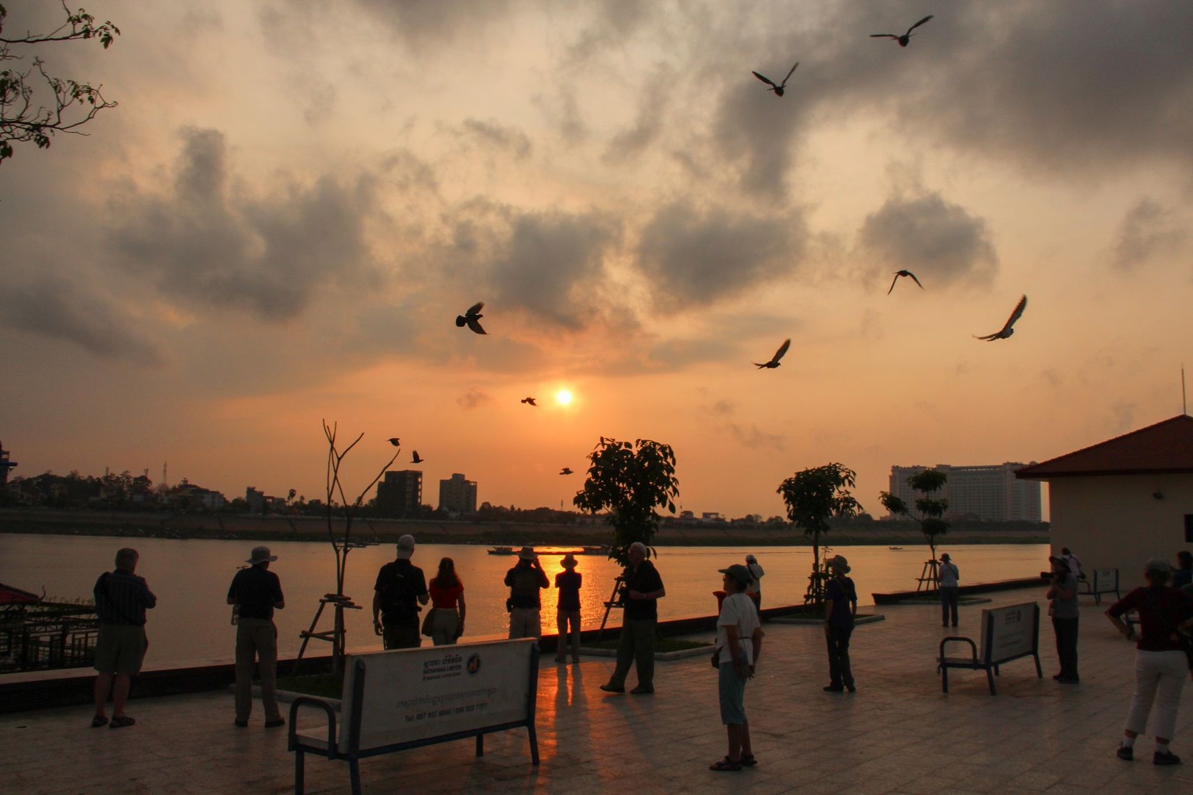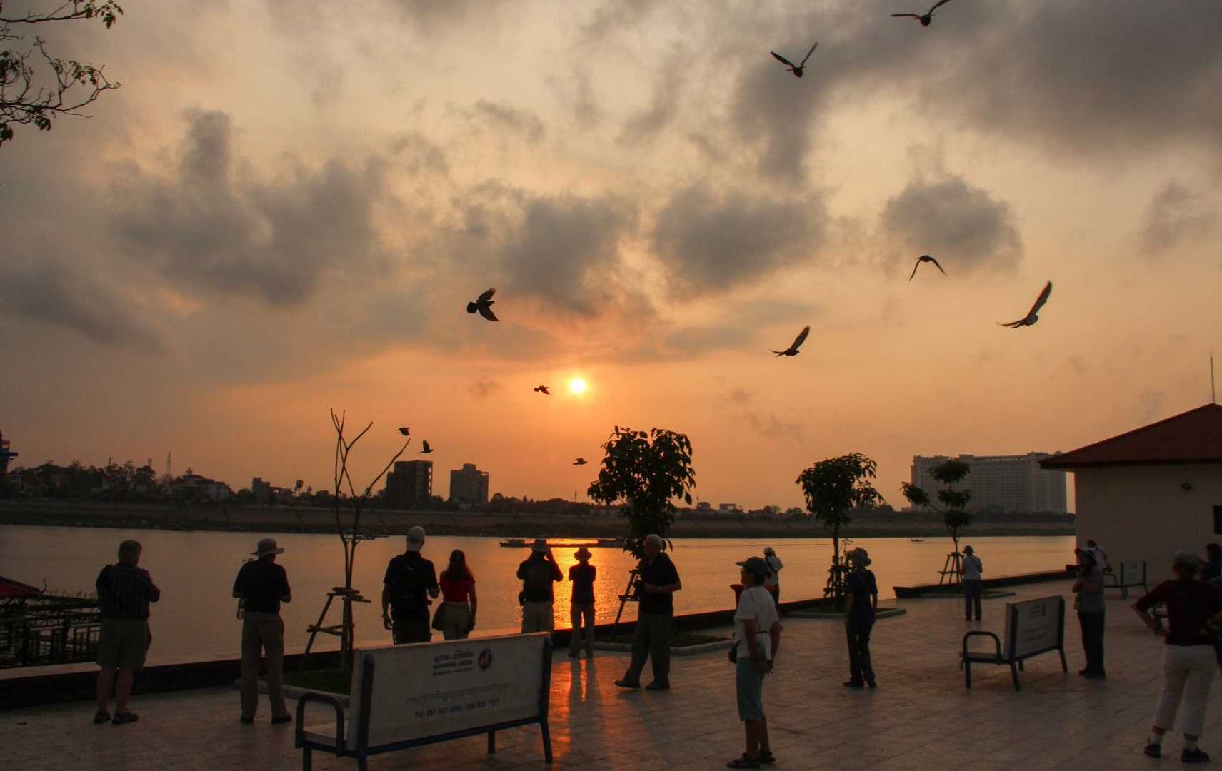 We awoke this morning in the Cambodian capital. Jahan is docked at the ferry terminal at the top end of Sisowath Quay, the scenic waterfront promenade of Phnom Penh. The early birds – and birders – went ashore for a walk to see the city streets come to life, as well as a spot of photography in the beautiful morning light of the “golden hour.” On the way we pass the fruit bat colony near Wat Phnom, where hundreds of the flying foxes roost each day before heading out to feed at dusk. Once back onboard Jahan we cast off and begin our transition into Vietnam. Phnom Penh, is located at the confluence of the two main rivers – the Tonle Sap and Mekong flow in, while the Bassac and the Mekong flow out. Also known as Chaktomuk (literally “Four Faces”, in reference to the four arms of the river), the Cambodian capital was well situated at the crossroads of regional riverine trade.