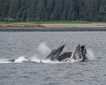 We picked up an impressive following of northern fulmars who were obviously hoping the ships propellers would stir up something of interest, or the crew might dump something edible off the aft deck (which doesn’t happen on this vessel). We were somewhat encumbered with a light fog throughout the morning. It was not too serious, as we could still see a few hundred yards or meters out from the ship, but it was thick enough to hide the horizon. Every now and then we sailed past or through flocks of swimming dovekies, an abundant species of small auk (also known as the little auk in Europe).