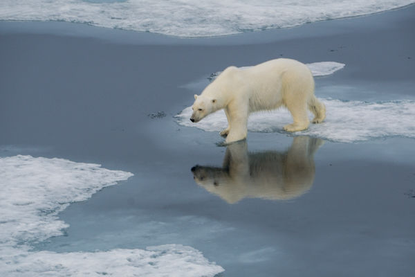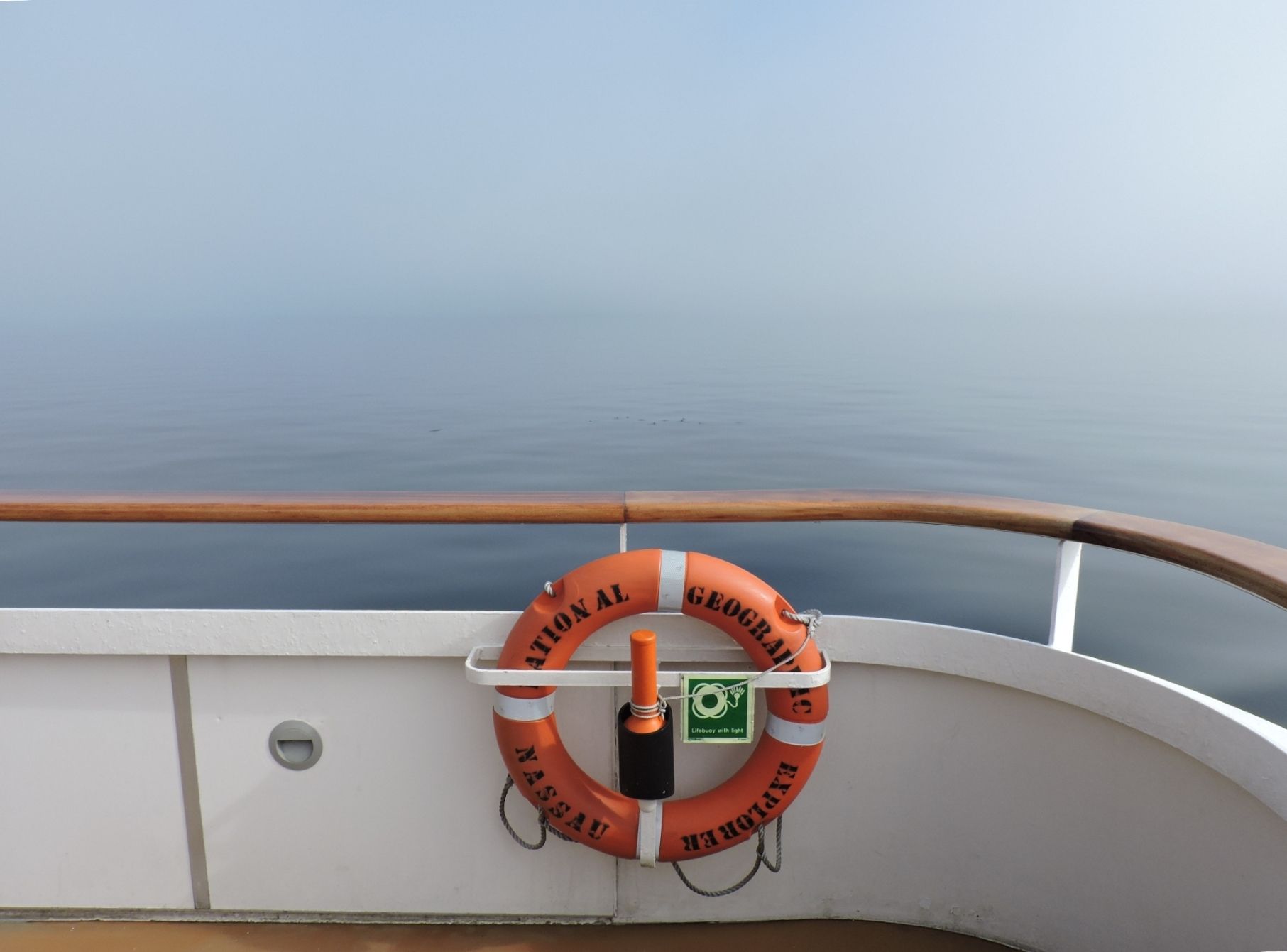 National Geographic Explorer spent a beautiful day at sea heading from Greenland towards Baffin Island. This took us across Davis Strait, named for John Davis who discovered this huge waterway while searching for a Northwest Passage route during three expeditions in the 1580s. Our morning in Davis Strait was like sailing in a millpond. Not a ripple could be seen, except for our very regular and symmetrical wake, which spread out behind the ship.