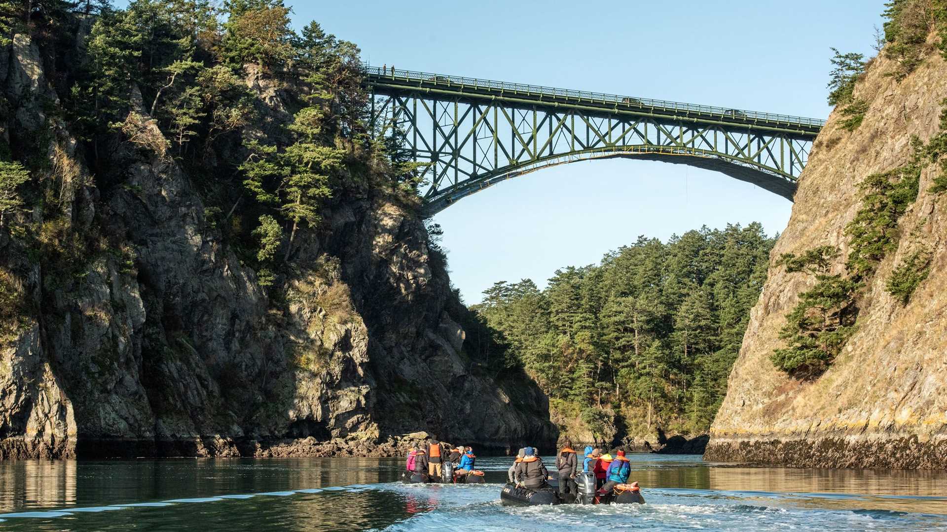 A narrow bridge was constructed in the 1930’s by the Civilian Conservation Corps crossing Deception Pass and connecting the two islands. Deception State Park spreads over 3,854 acres and has both a marine and camping park with 77,000 feet of salt water shoreline and 33,900 feet of freshwater shoreline on three lakes within the park boundaries.