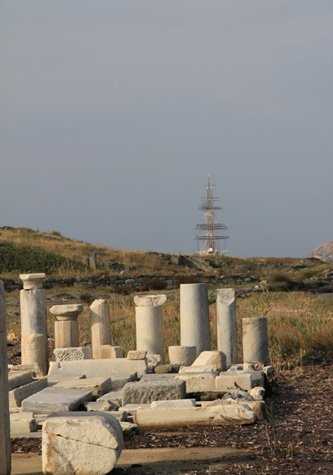 Full of new knowledge we returned to the Sea Cloud. A great buffet lunch was followed by another hoisting of the ship’s sails by the remarkable crew. For centuries men immortalized in the myths of Jason and Odysseus had done the same. Late in the evening we set sail for Santorini. A great day had just ended but another was ahead. Delos was considered the center of the Aegean world in ancient times but geologically Santorini is the real center. It is where the plates of Europe-Asia-Africa meet. We can’t wait to wake up in the caldera facing the sheer cliffs the cataclysmic volcano eruption of the 17th century BC created.