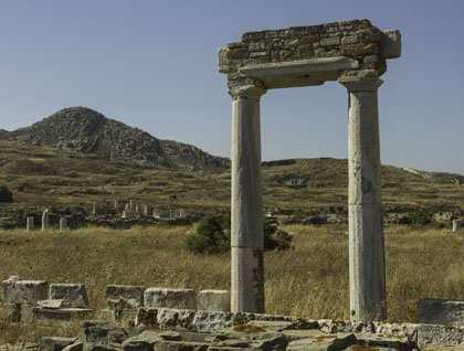 Our wonderful guides Stella and Effie led us on our exploration of this special uninhabited and historically crucial island. The island of Delos has been inhabited for at least 4,000 years, long before the Greeks arrived. The Ionians came here in about the year 1000 BCE and brought the legend of Apollo with them and they established the annual Delia festival here. Thus it has been considered a sacred place for 3,000 years. It is known principally for the story of the birth of Apollo and Artemis. The ancient tale says that Leto, pregnant from her affair with Zeus, was seeking a sanctuary from her jealous lover Zeus to give birth to her son and daughter, Apollo and Artemis. Zeus had the unfortunate habit of consuming his children so that he would never have any rivals. Leto gave birth to the twins at the edge of the sacred lake, Artemis, who became the chaste goddess of the hunt, being born first, followed by her twin Apollo, the god of the sun and rationality. Delos soon became a place of pilgrimage for the island Greeks and this in turn led to its becoming a bustling commercial center with a population of some 30,000 and its maximum in the 1st century BCE. Athens made Delos the center of the first Delian League, the first Athenian naval confederation in 478 making Athens the leading city-state amongst the Greeks.