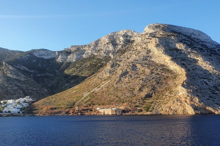 After a wonderful morning we were back onboard the ship for a great lunch. We sailed to Amorgos on the edge of the Cycladic Islands. The sea was so beautiful and the winds allowed us to study the crew up on the masts. Of course Sea Cloud looked spectacular!