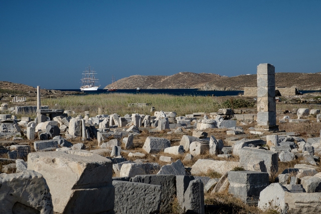 We were once again swept back in time as we woke this morning at the uninhabited island of Delos, home to one of Greece’s great archaeological sites and the mythical birthplace of twins Apollo and Artemis. Delos has taken on several roles in civilization, beginning as a shrine to Apollo, a sacred sanctuary, and eventually a booming commercial center, which came to its height of power during the Hellenistic period. Now the large archaeological site remains. With a little imagination and interpretation from our local Greek guides, the magnificent city that once stood here came alive in our minds.