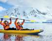 As we approached Devil Island, the fog cleared and the view was magnificent. All around us, glaciers flowed off landmasses and the mesas of volcanic lava flows. Then a fin whale was spotted, followed by killer whales, a large group of humpback whales, Antarctic fur seals, leopard seals and Adélie penguins. We changed plans and decided to do a Zodiac cruise because of the absolute abundance of marine life here. What happened on the Zodiac cruise is barely describable in words. It was incredible to see the natural behavior of so many types of Antarctic wildlife up close and all around us. The viewing was so superb that we decided to abandon the shore landing and keep cruising for a total of three hours!
